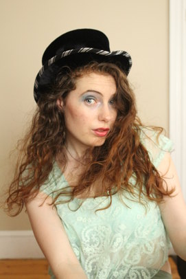 This self crushed velvet and silk dupioni tophat was made for my millinery class. It is fit to me, a 21 1/2 inch circumference for the head. I made the pattern, the inside buckram, both cut and shaped, and the sewed the fabric and pieces together. I also added fabric covered buttons for a whimsical accent, which I covered myself.